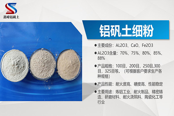 高鋁細粉常用規格:100目,200目,250目,300目,325目(也可按照客戶要求定制加工)
